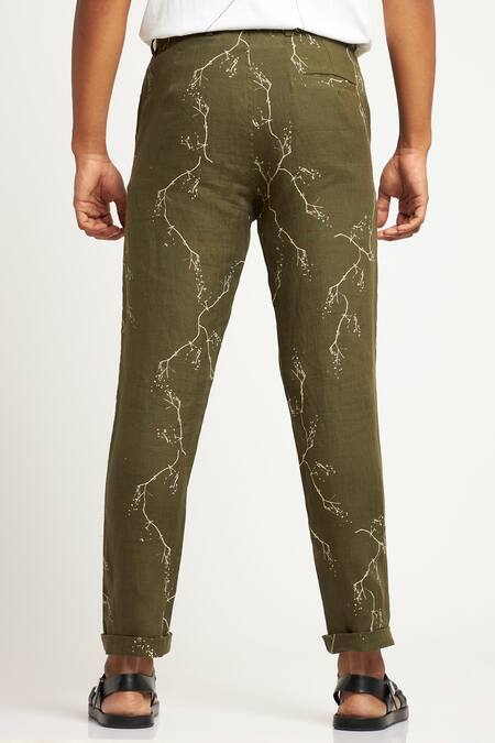 Green 100% Linen Twig Toco Printed Trouser