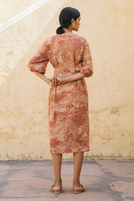 Brown Cotton Boat Toile Print Dress