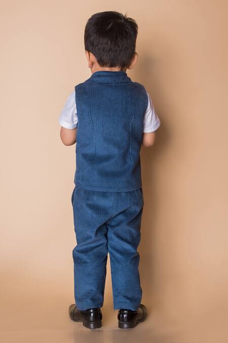 Blue Corduroy Waistcoat And Pant Set