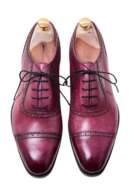 Pink European Vegetable Tanned Leather Sole Broque Shoes