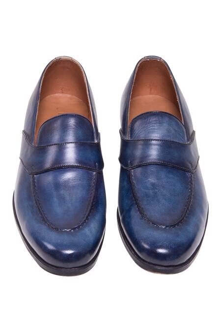 Blue tone loafer shoes crafted in European vegetable tanned leather sole, hand painted European full grain leather.