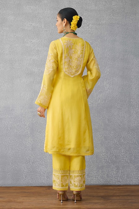 Yellow Silk, Organza, Crepe Embroidery Kurta Set