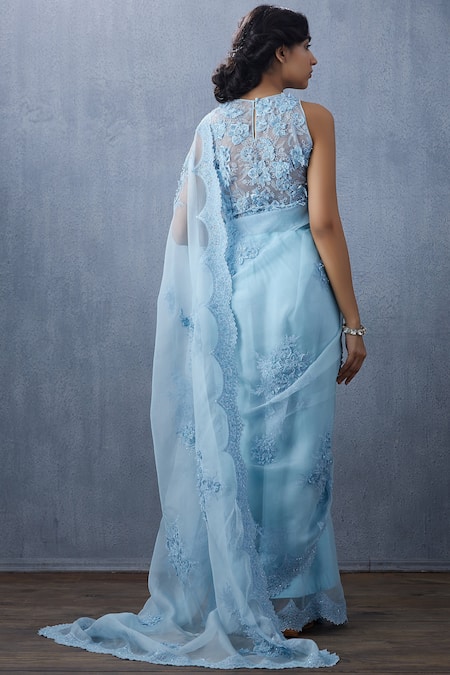 Blue Organza Embroidered Saree