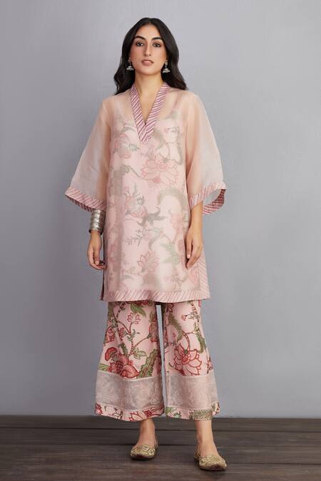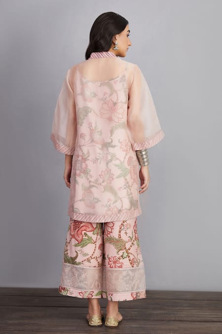 Pink 100% Cotton And Pure Gulbahari Revathi Chogha & Farshi Pant Set