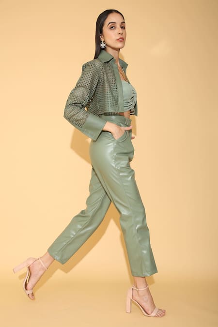 Double belt loops, Note:, Jacket, crop top, shirt & purse worn by the model are not for sale