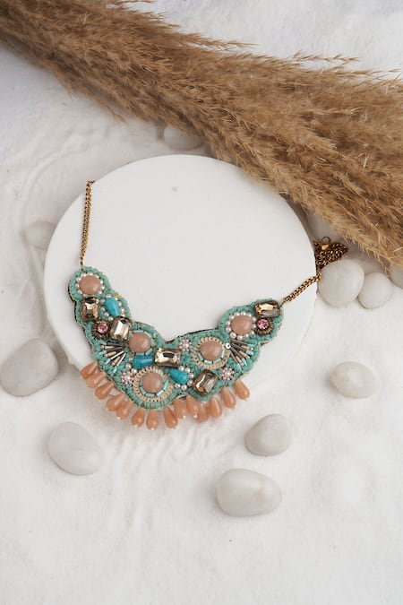 Multicolor choker featuring semi-precious mixed stone embellishments and bead drops
