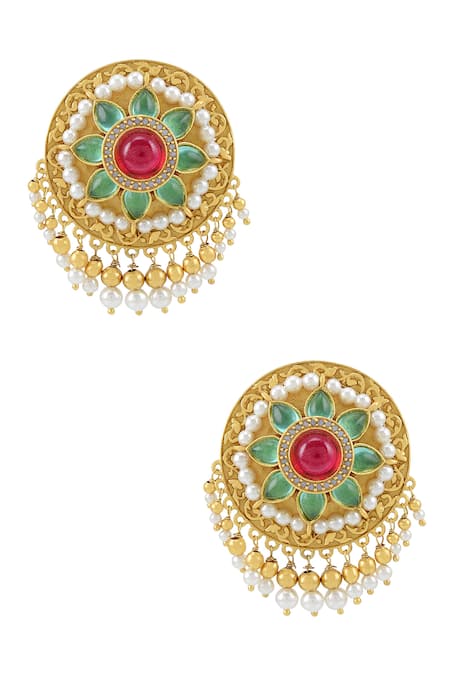 Multi Color Pearls, Glitter Adrija Embellished Floral Stud Earrings