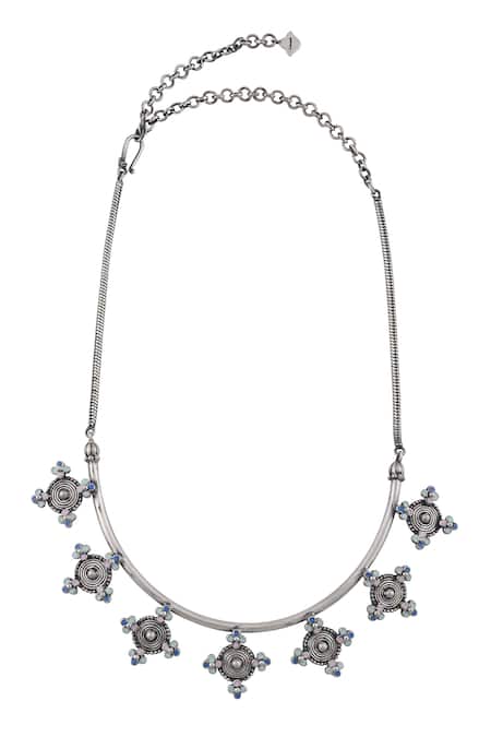 Silver Plated Enamel Floral Motif Hasli Necklace