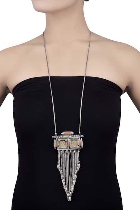 Silver Plated Handmade Painting Hand Painted Taveez Necklace
