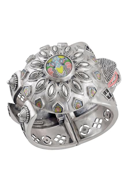 Silver Plated Handmade Painting Oxidized Hand Painted Cuff Bracelet