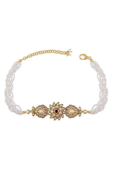 Gold plated choker featuring white, red and pink stone studded floral central motifs