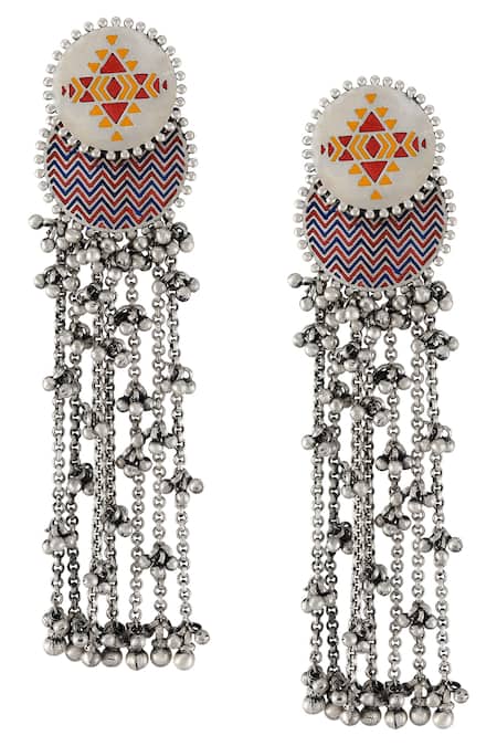 Oxidised silver plated dangler earrings featuring multicolor enamel with rawa work