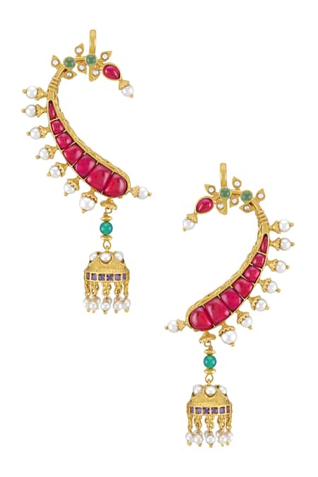Multi Color Pearls, Glitter Mayil Embellished Jhumka Earcuffs