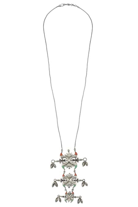 Tribe Amrapali_Silver Plated Enamel Surya Pendant Necklace _Online_at_Aza_Fashions