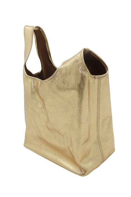 Gold Plain Rae Metallic Wristlet Leather Bag