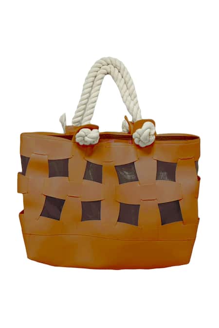 Rope handles for easy carrying, Cutwork leather pattern adds uniqueness, Mesh lining for durability