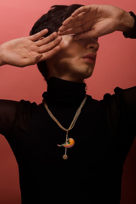 Buy_Trupti Mohta_Multi Color Carved Bird Pendant _at_Aza_Fashions