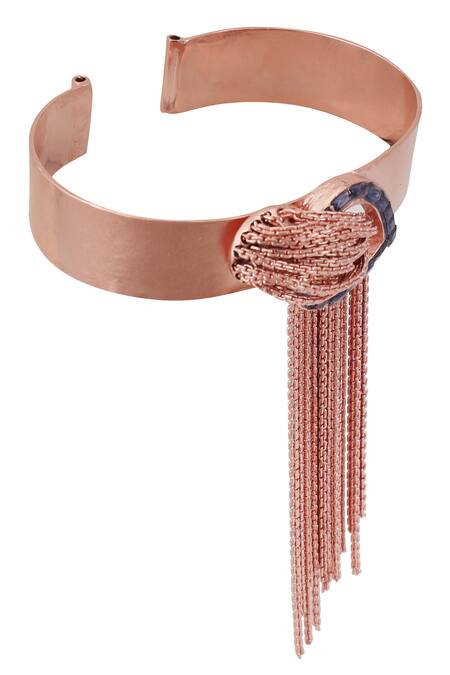 Buy_Trupti Mohta_Rose Gold Chains, Crystals Cascade Bracelet With Blue_at_Aza_Fashions