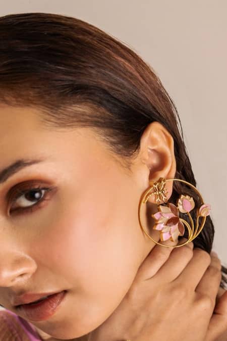 22kt gold plated hoop style bloom earrings with enamelled detailing.