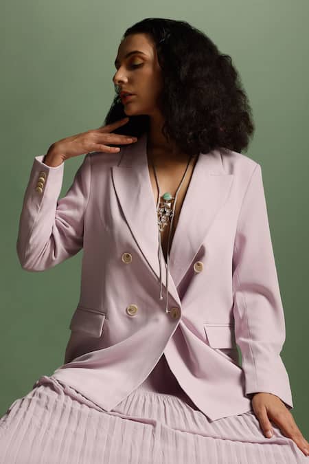 Buy_Trupti Mohta_Grey Geometric Carved Long Chain Pendant Necklace _at_Aza_Fashions
