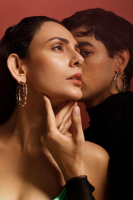 Shop_Trupti Mohta_Black Twigs Carved Balis _at_Aza_Fashions
