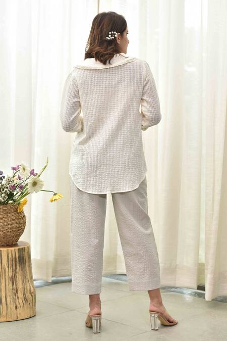 Buttoned cuffs >Collar with lace trim, Note:, Pant worn by the model is not for sale