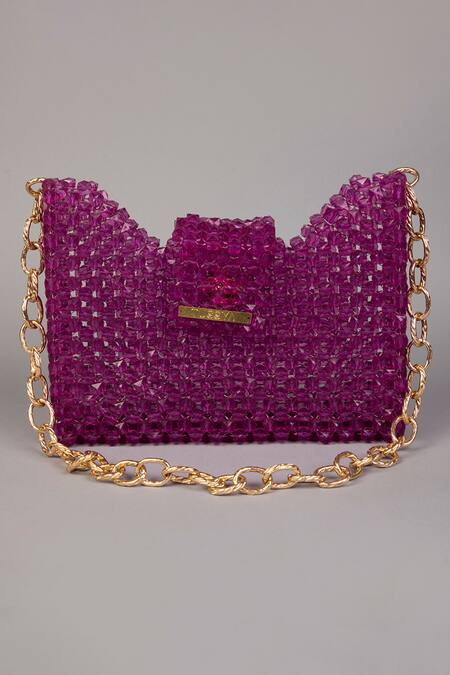 Buy_Tussya_Purple Crystals Geometric Handbag With Sling_Online_at_Aza_Fashions