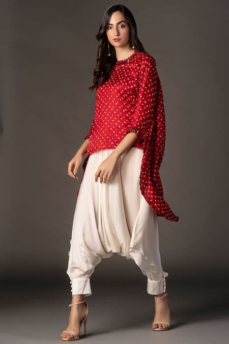 Red Gajji Silk Round Asymmetric Bandhani Top
