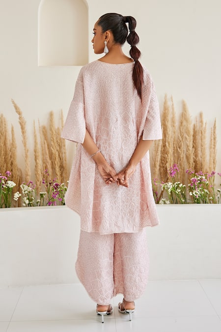 Pink Rayon Embroidery Boat Neck Bandhani Long Asymmetric Top
