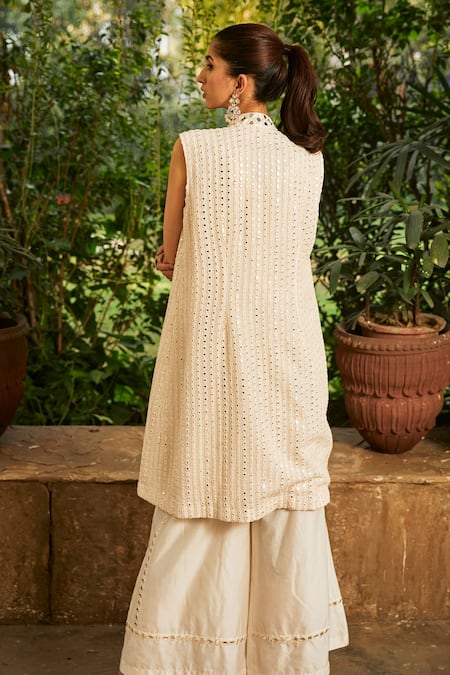 White jacket featuring mirror work and bead embellishments