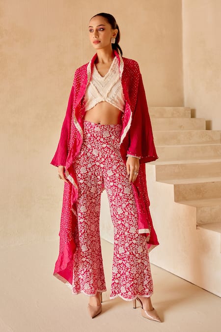 Intricate rabari mirror work detailing, Frayed hem finish, Racerback silhouette