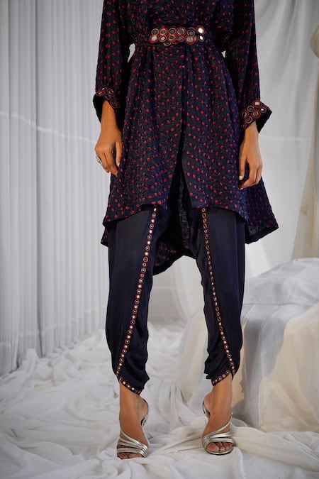 Blue Modal Satin Mirror Rabari Tulip Dhoti Pant