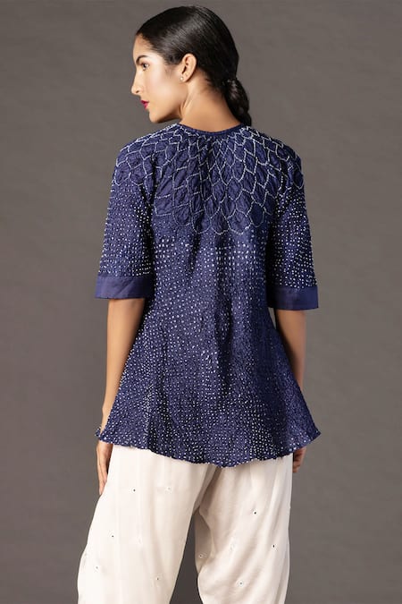 Blue Silk Round Bandhani Kedia Top