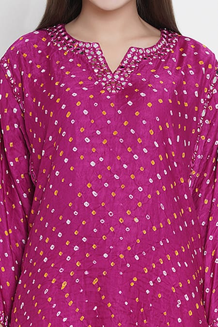 Pink Gajji Silk Round Bandhani Kurta