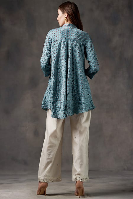 Blue Gajji Silk Mandarin Collar Bandhani Tunic