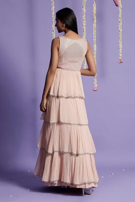 Blush pink layered kurta with sequin embroidered bodice. Paired with lehenga & dupatta.
