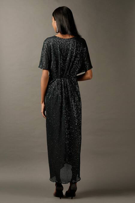 Green Viscose Sequins Work V Neck Embellished Draped Gown