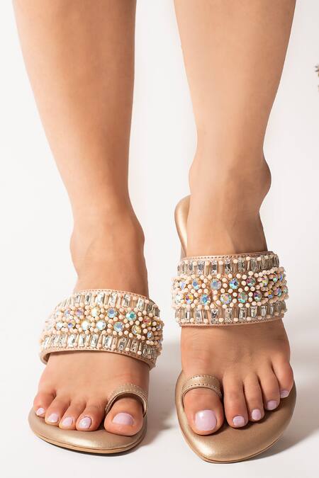 Gold Stones Moonstone Embellished Kolhapuri Heels