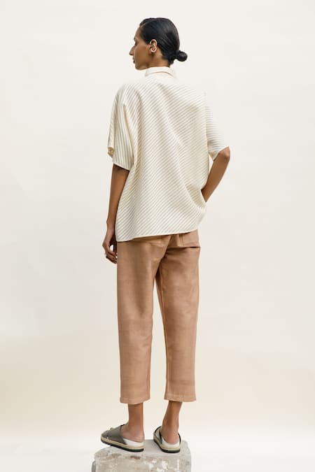 Off White Cotton Collared Cyprus Textured Shirt