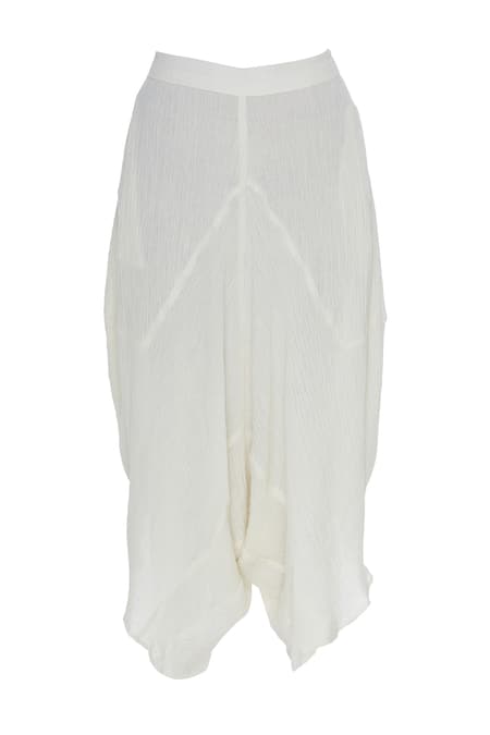 Off White Crinkle, Cotton Draped Cropped Pant