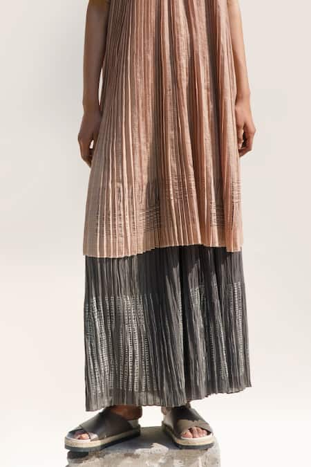 Charcoal micro pleated wide pant featuring kantha stitch detailing