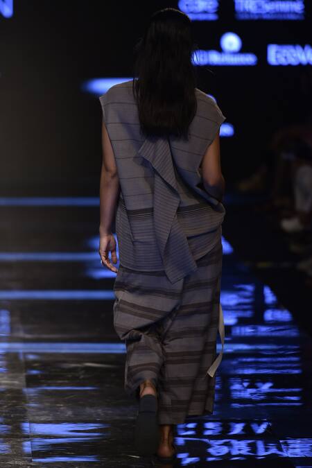 Buy_Urvashi Kaur_Gray Grey Striped Palazzo Pant _at_Aza_Fashions