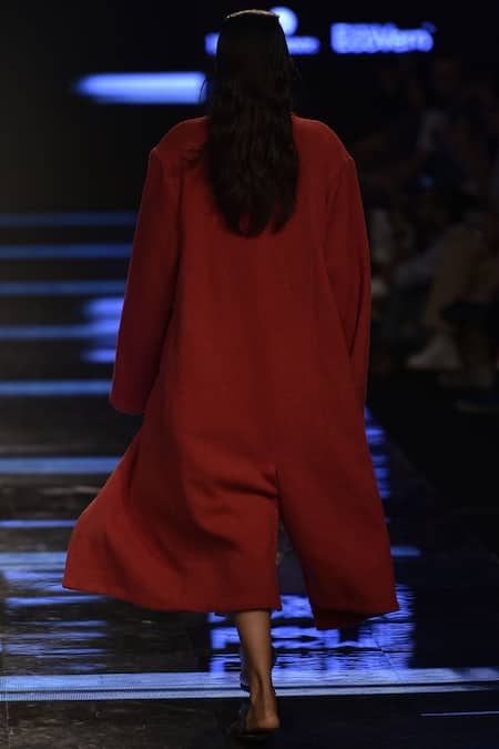 Buy_Urvashi Kaur_Red V-neck Herringbone Textured Lapel Notch Jacket _at_Aza_Fashions
