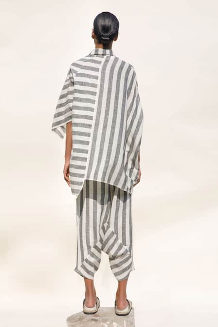 Slate dhoti salwar featuring a stripe pattern and side pockets