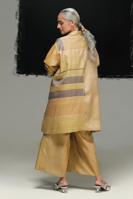 Multicolour pant made from tussar fabric featuring a relaxed fit