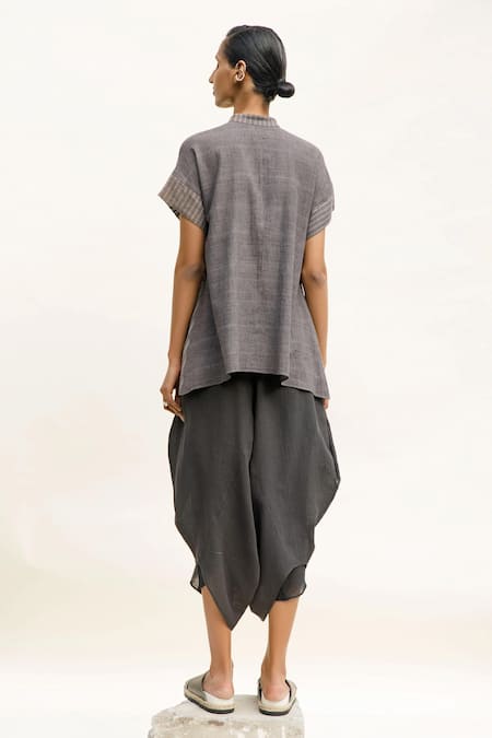 Grey Handloom Cotton Mandarin Collar Nova Stripe Pattern Top