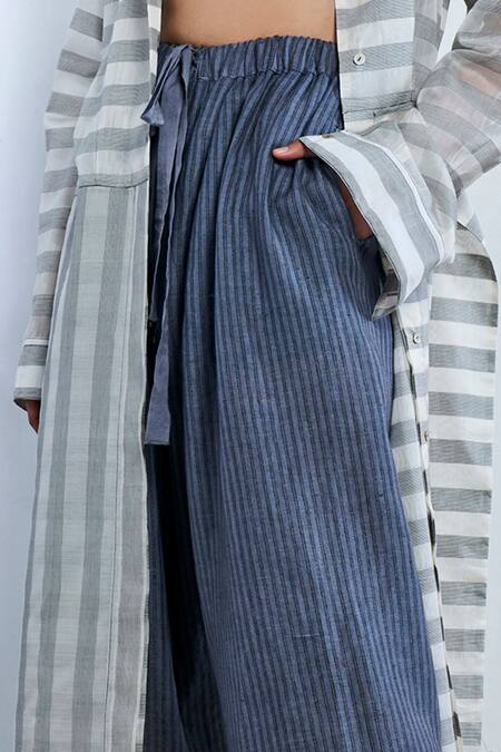 Gray Cotton Striped Organic Flared Pant