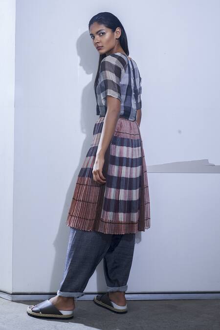 Crop top worn by the model is not for sale., Skirt worn by the model is not for sale.