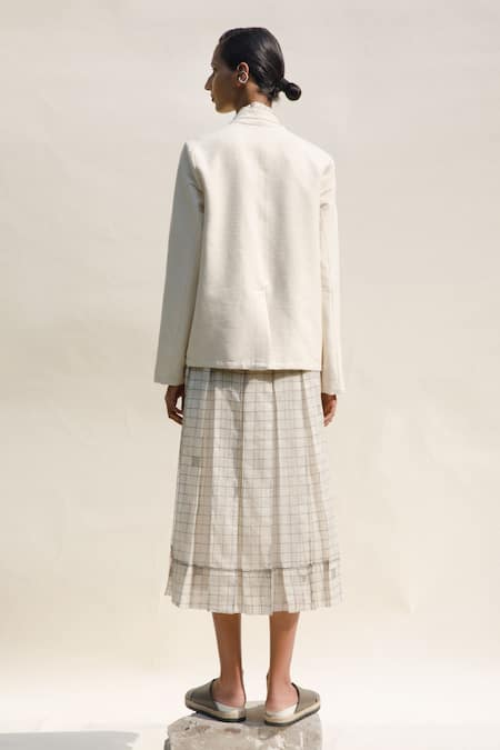 Off white shell tailored full sleeve jacket made from handspun cotton with a notched lapel collar