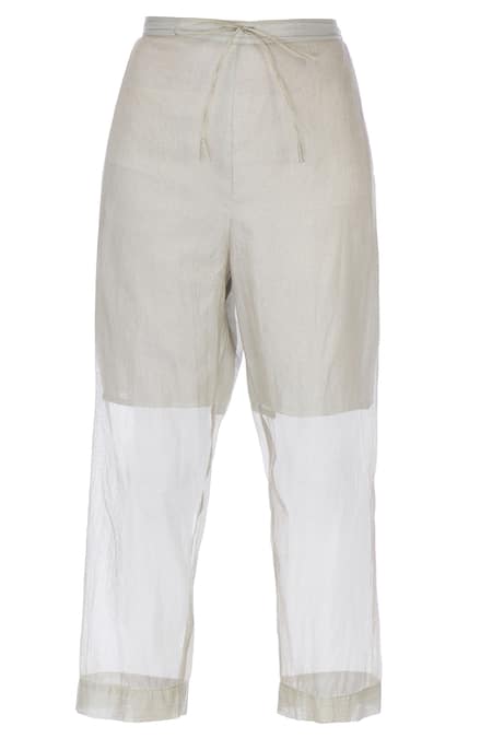 Blue Net, Silk Sheer Panel Zari Weave Tie-up Pants